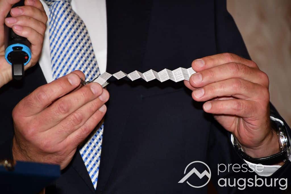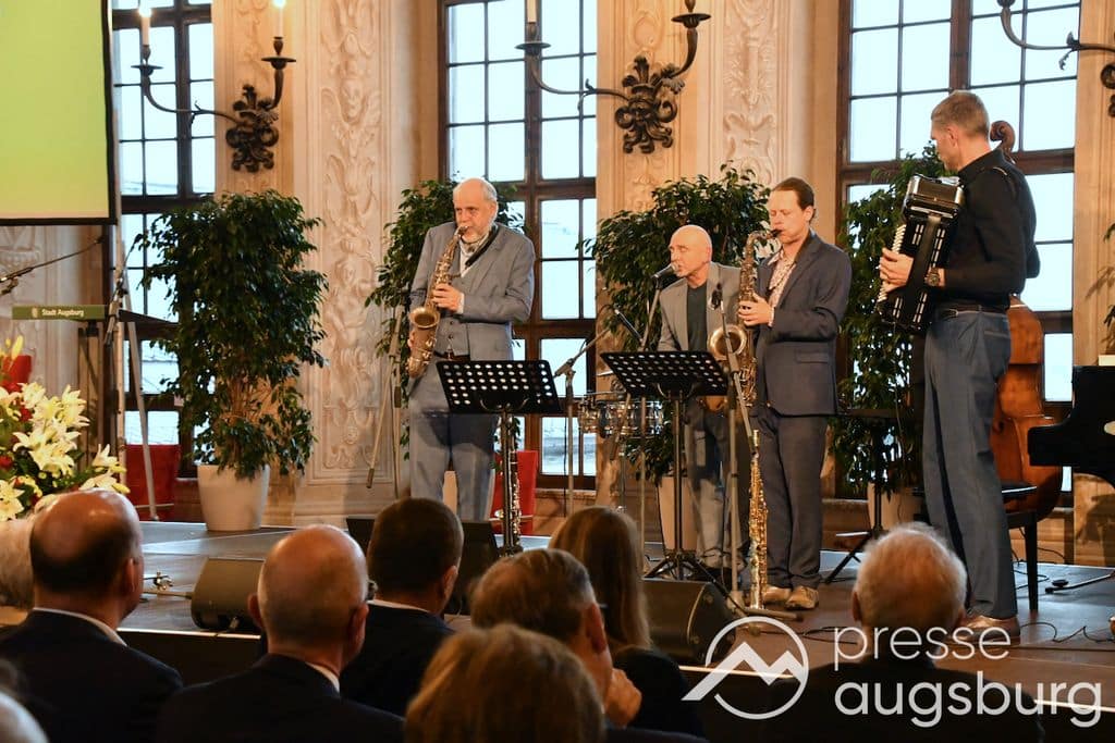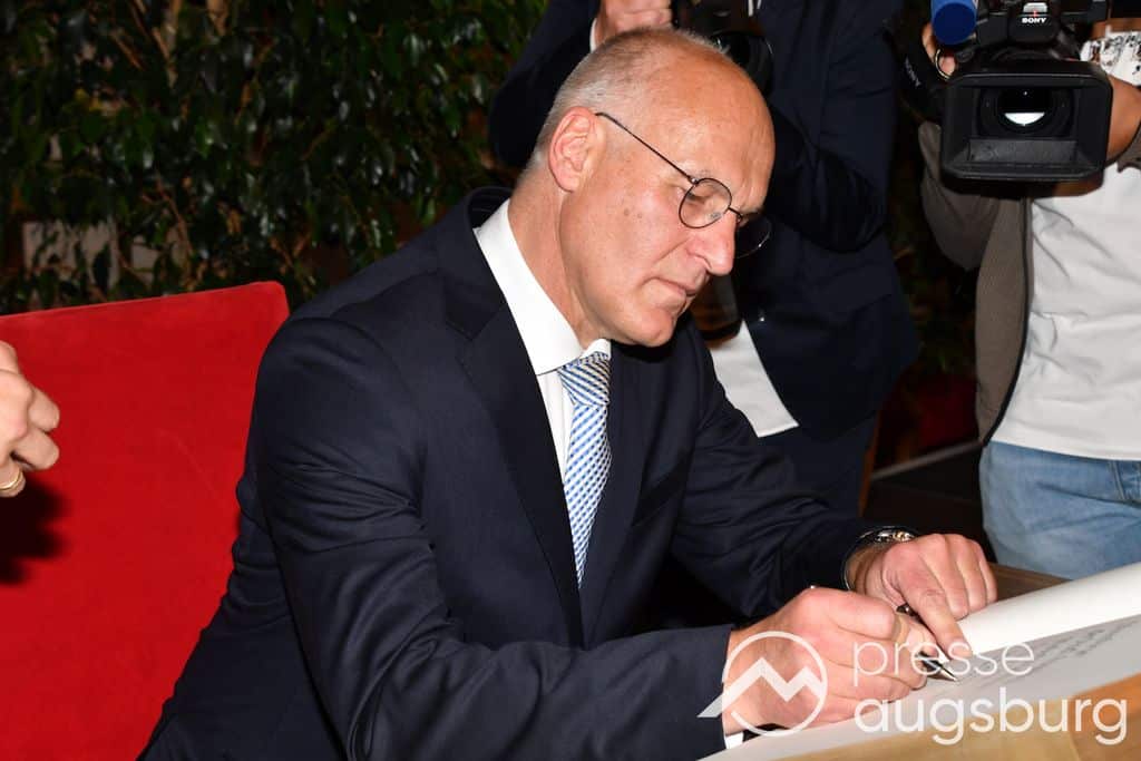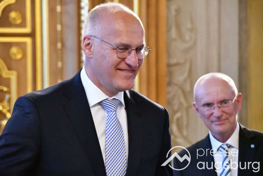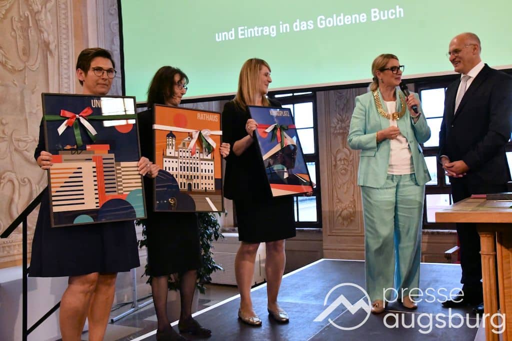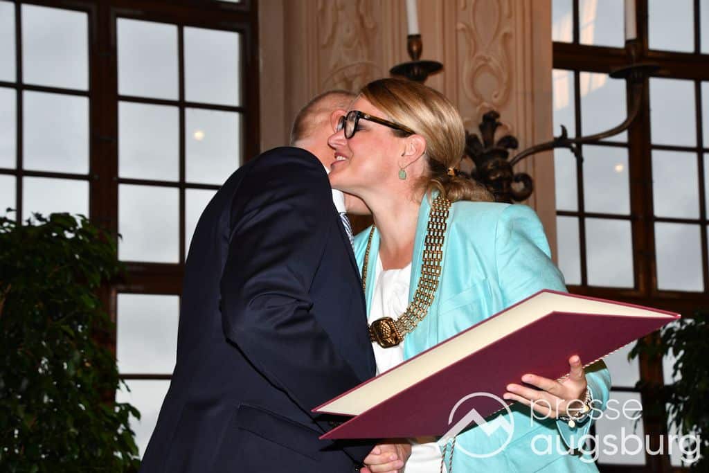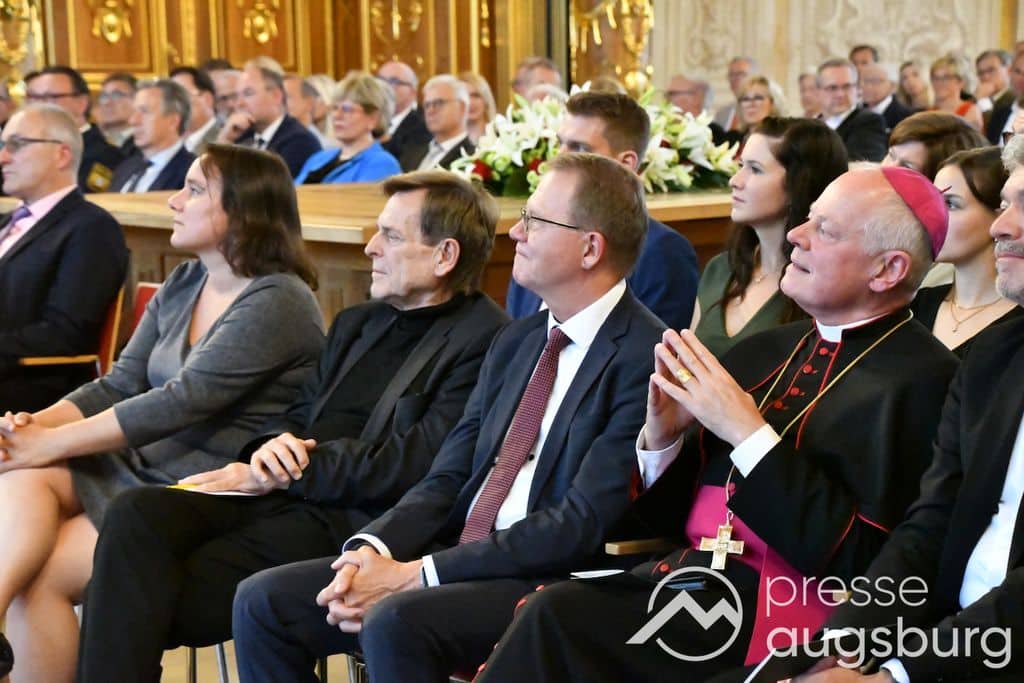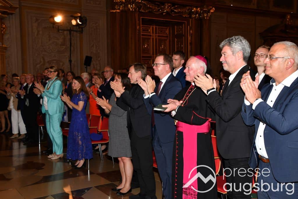 Die Verleihung der Ehrenbürgerwürde fand am Mittwoch im Rahmen eines Festakts im Goldenen Saal des Rathauses statt. Die Laudatio hielt Karl Michael Scheufele, der von 2008 bis 2018 als Regierungspräsident von Schwaben Wegbegleiter von Oberbürgermeister