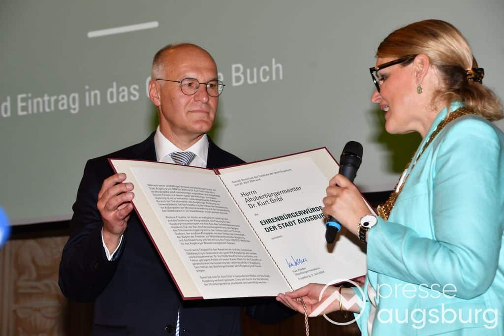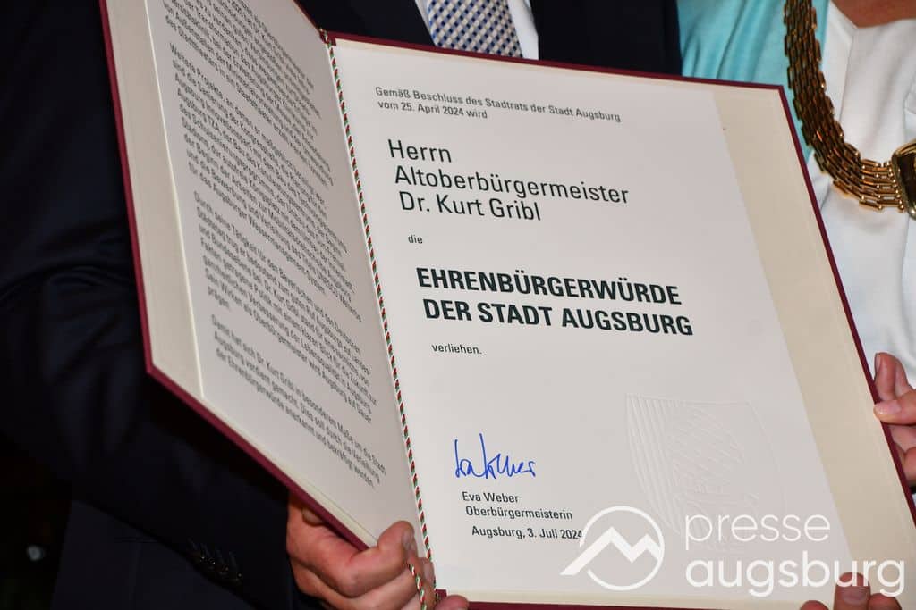 Dr. Kurt Gribl wurde mit der Ehrenbürgerwürde der Stadt Augsburg ausgezeichnet. Alt-OB Dr. Gribl ist damit die 46. Persönlichkeit, an welche die Stadt die Auszeichnung seit 1820 vergibt. Den Titel „Altoberbürgermeister“ hatte ihm der Stadtrat bereits 2020 verliehen.
