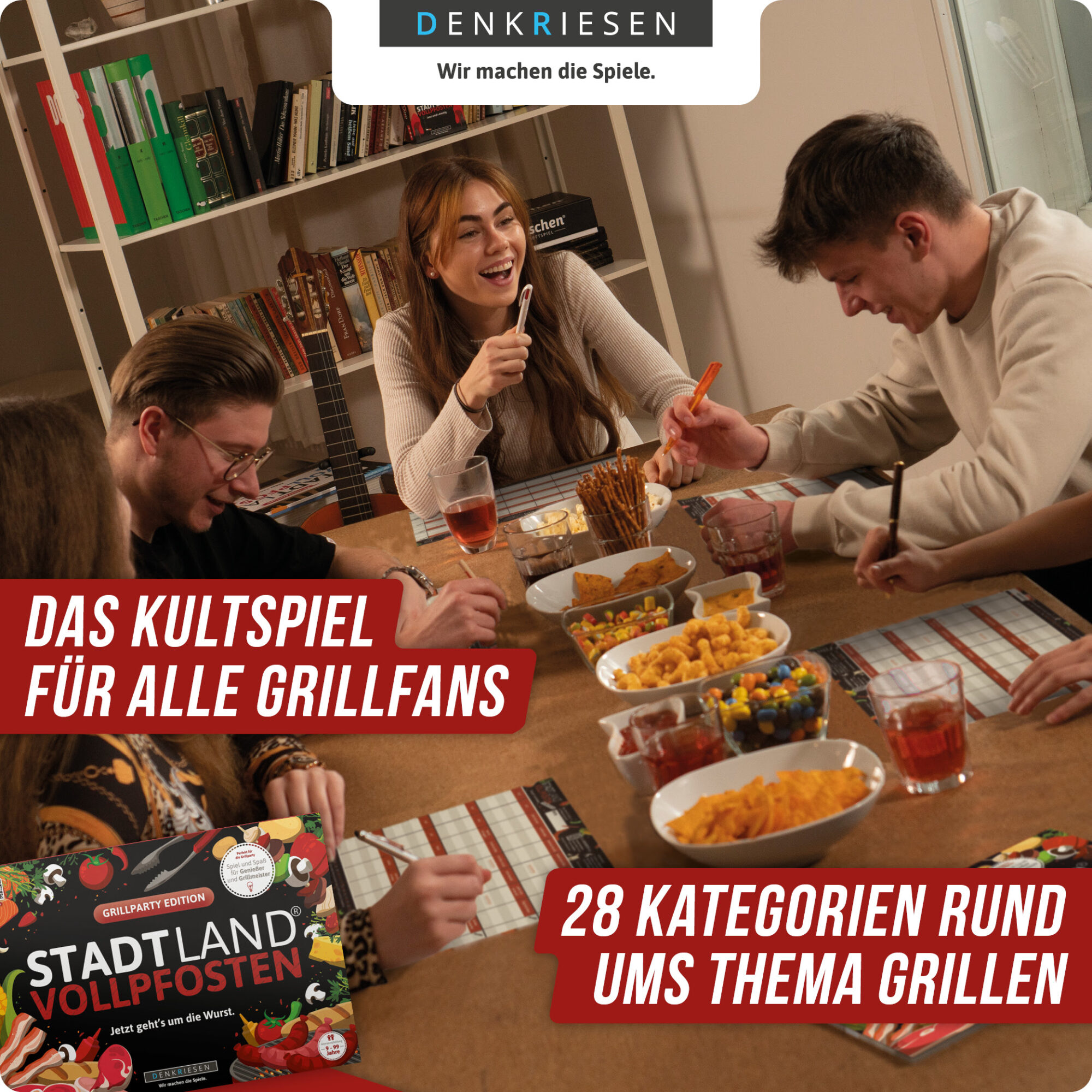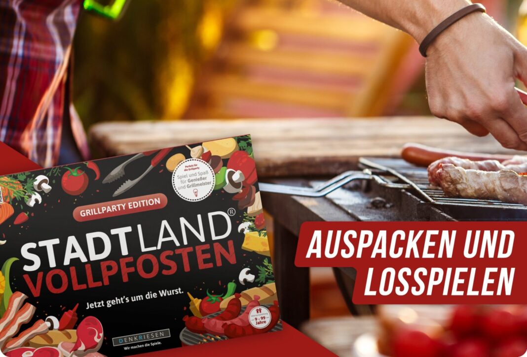 Wenn der Grill läuft und die Getränke kalt sind, fehlt nur noch eins für die perfekte Gartenrunde: ein unterhaltsames Spiel für alle. Mit der „Stadt Land Vollpfosten – Grillparty Edition“ bringt DENKRIESEN genau das auf den Tisch – Wortakrobatik, Lacher und originelle Kategorien rund ums Thema Sommer, Grillen und Picknick. Ideal für laue Abende im Garten, spontane Treffen im Park oder als witzige Geschenkidee.
