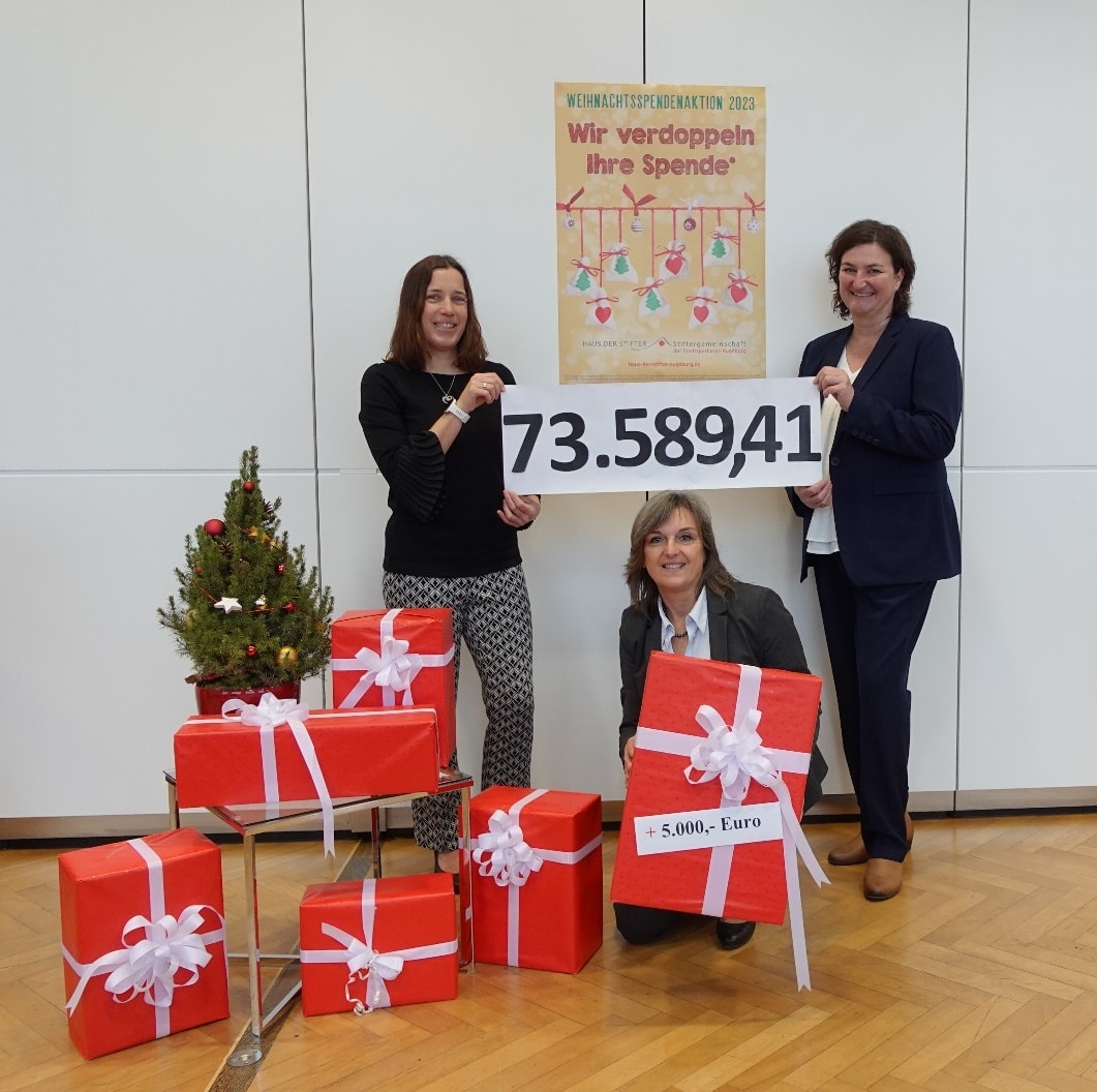 Bereits zum achten Mal organisierte die Stadtsparkasse Augsburg einen Spendenaufruf für Förderstiftungen in der HAUS DER STIFTER Stiftergemeinschaft. Zusammen mit der Verdoppelungsspende der Stadtsparkasse können Ende Januar insgesamt 73.589,41 Euro ausgeschüttet werden.
