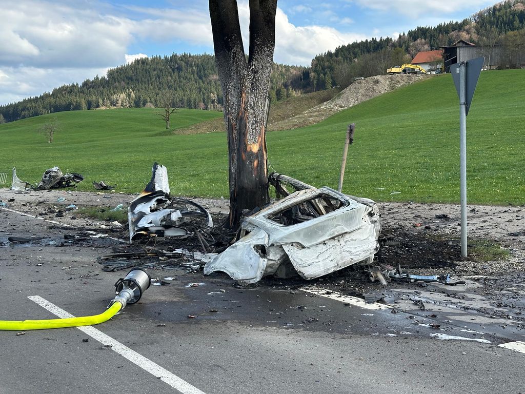 Der 59-jährige deutsche Fahrer eines Pkw geriet aus bislang ungeklärter Ursache alleinbeteiligt nach rechts von der Fahrbahn ab und prallte frontal gegen einen Baum. Beim Aufprall fing das Fahrzeug sofort Feuer. Der Mann erlag noch an der Unfallstelle seinen schweren Verletzungen. Die Staatsanwaltschaft Kempten hat zur genauen Klärung des Unfallhergangs ein unfallanalytisches Gutachten angefordert.