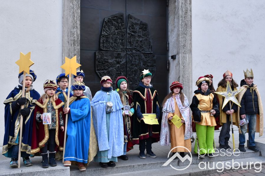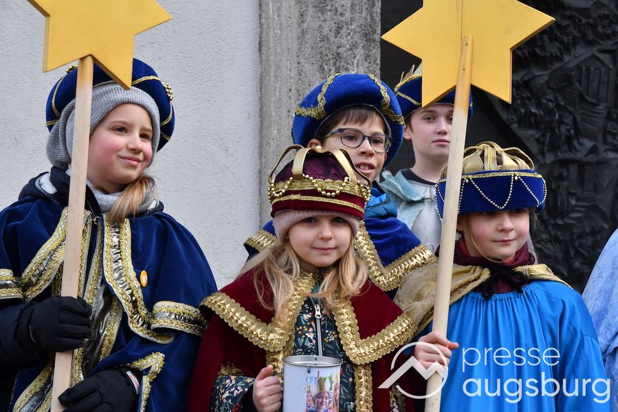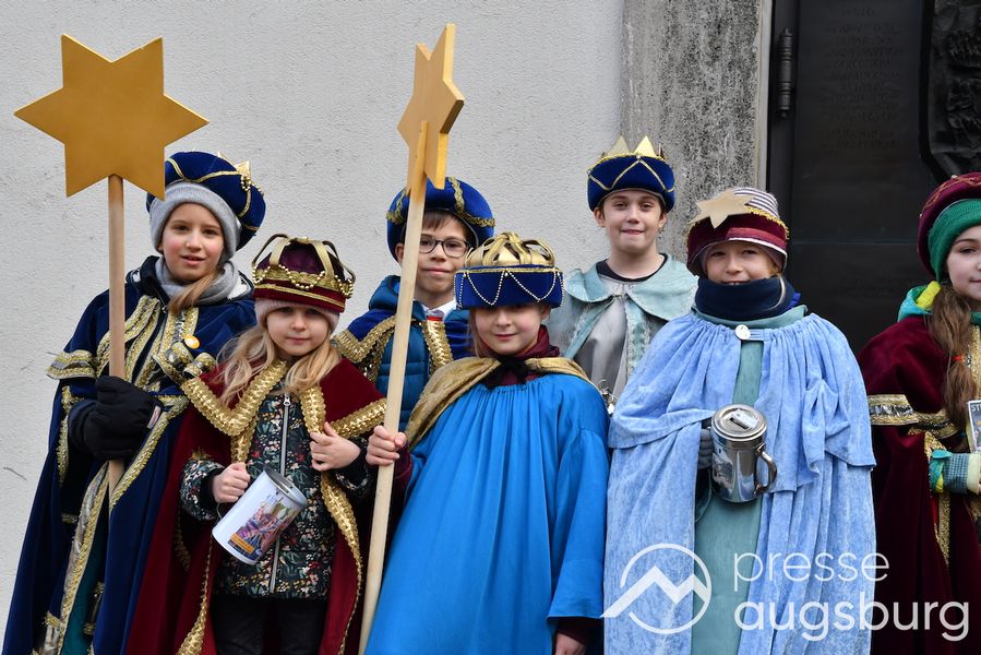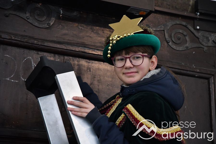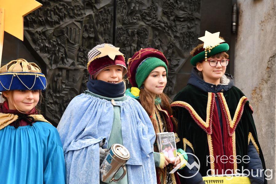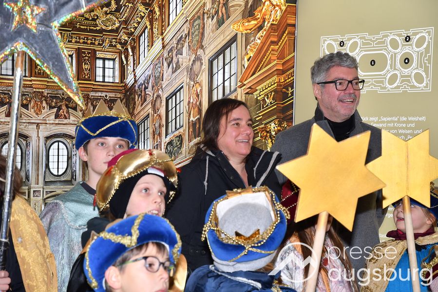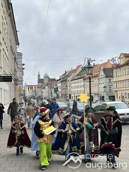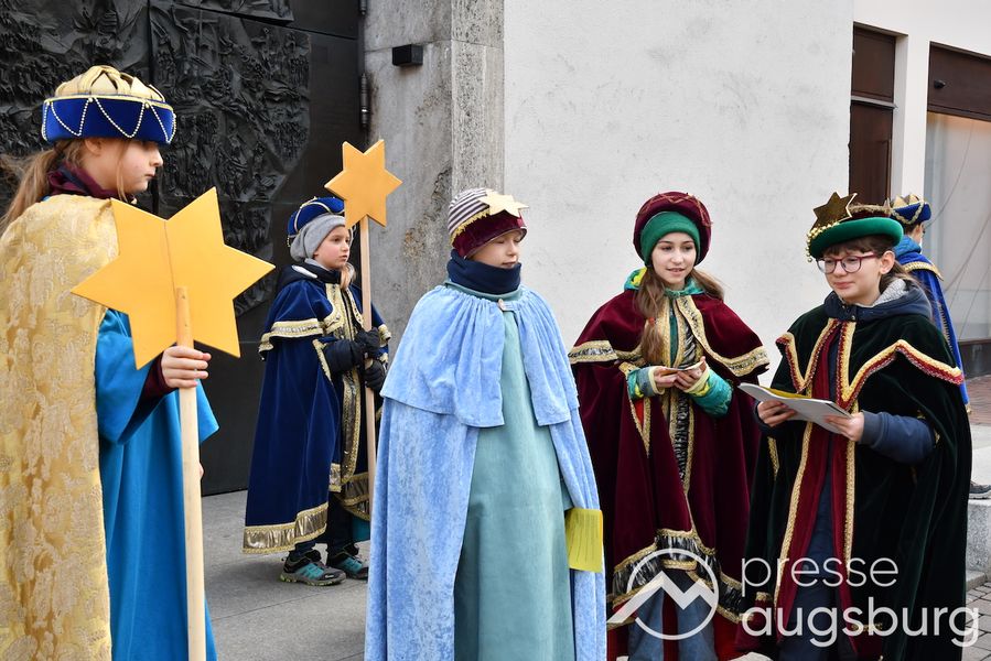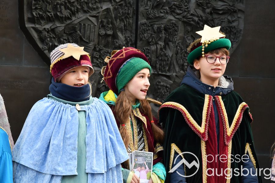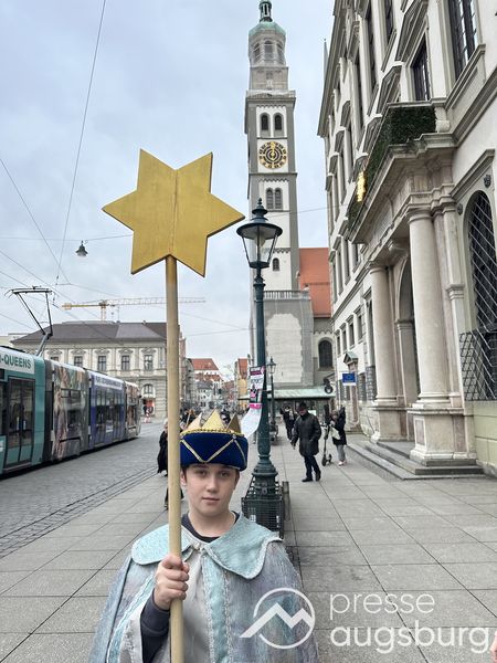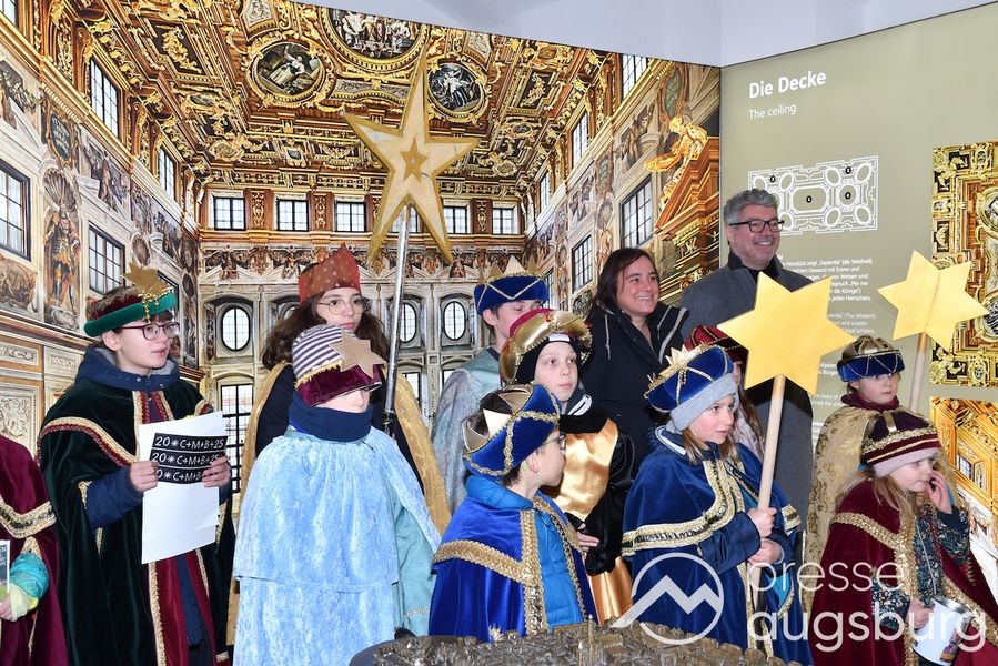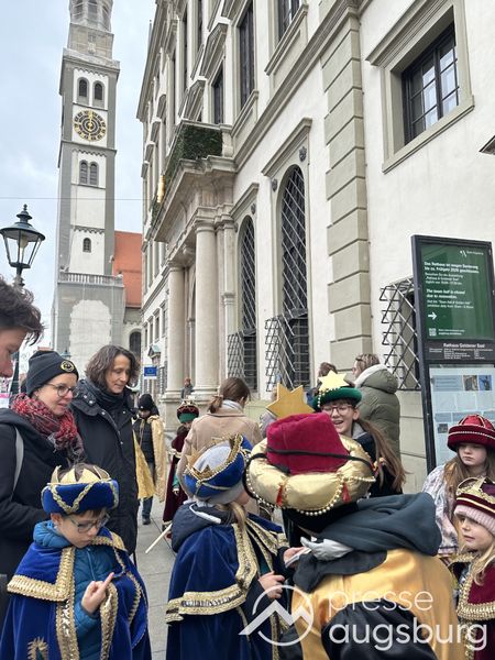 Der Höhepunkt des Tages folgte mit dem Anschreiben des Segensspruches 20*C+M+B+25 an der Eingangstür des Augsburger Rathauses, das aktuell als Interimsausstellung genutzt wird. Hier wurde das Rathaus feierlich gesegnet. Im Anschluss zogen die Sternsinger in die Straßen der Innenstadt, um ihren Segen und ihre frohe Botschaft zu den Menschen zu bringen.