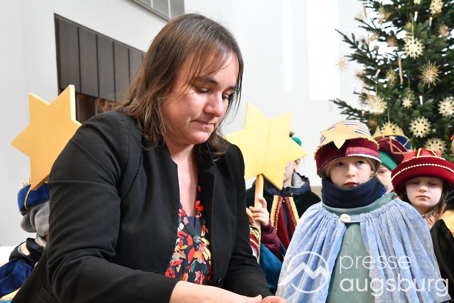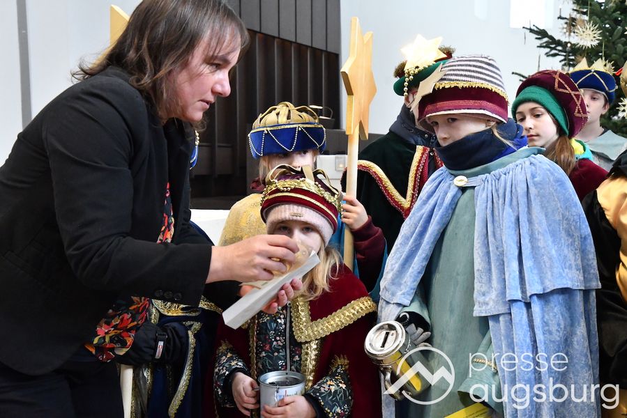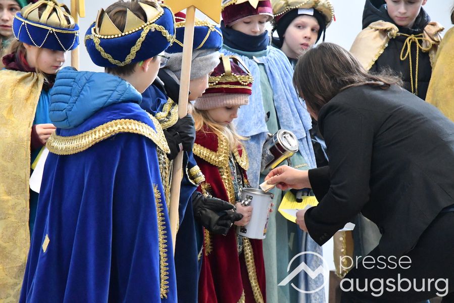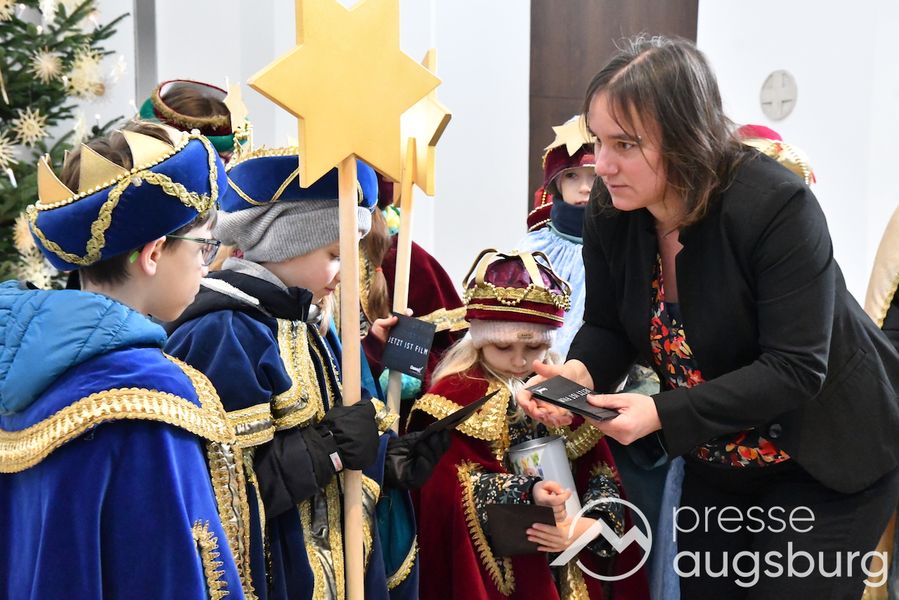 Nach der Zeremonie in der Kirche begrüßte die zweite Bürgermeisterin Martina Wild die Sternsinger-Gruppen sowie ihre Betreuerinnen und Betreuer im Foyer des Moritzsaals. Dort wurde ein Umtrunk gereicht, und die gesammelten Spenden offiziell übergeben. Die Sternsinger engagieren sich in diesem Jahr wieder für einen guten Zweck, und ihre Botschaft des Friedens und der Solidarität wird mit großer Dankbarkeit aufgenommen.