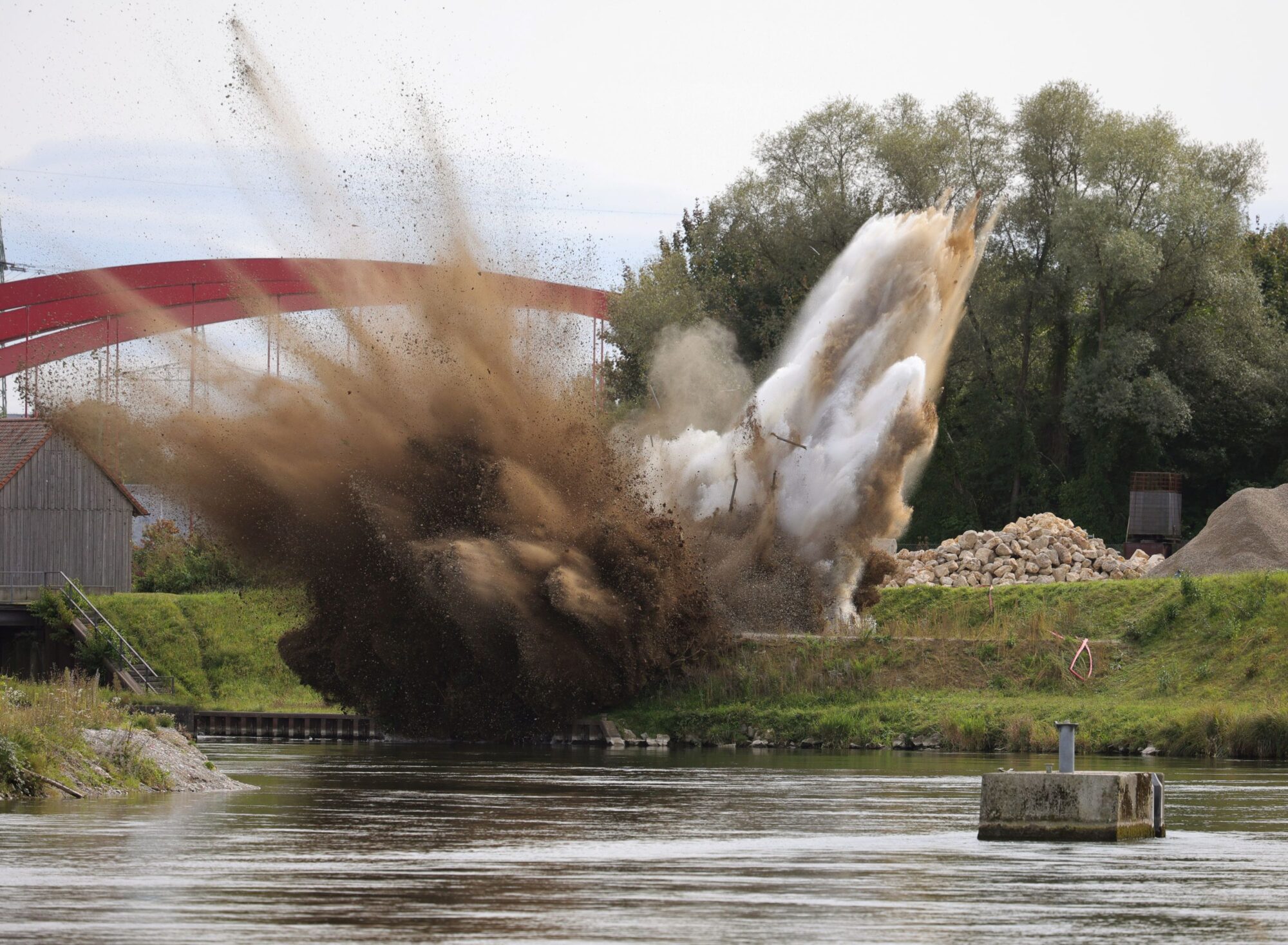 Durch die gezielte Sprengung wurde der Deich auf einer Länge von acht Metern geöffnet. Das anstehende Wasser konnte so planmäßig in den Lechkanal abgeleitet werden. Dieses Vorgehen simulierte ein Szenario, das im Ernstfall Leben retten und Schäden verhindern könnte:„So eine gezielte Dammöffnung dient der Gefahrenabwehr: Sie kann bei extremen Hochwasserereignissen dazu beitragen, besiedelte Gebiete und kritische Infrastrukturen vor Überschwemmung zu schützen, indem gezielt Wasser vorher ausgeleitet wird.“