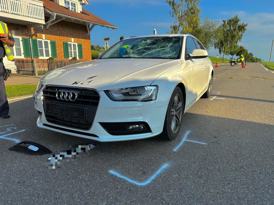 Die Pkw-Fahrerin konnte trotz Vollbremsung nicht verhindern, dass der Radfahrer frontal erfasst und über das Fahrzeug geschleudert wurde. Er erlitt lebensgefährliche Verletzungen und wurde mit einem Rettungshubschrauber ins Klinikum Kempten gebracht.