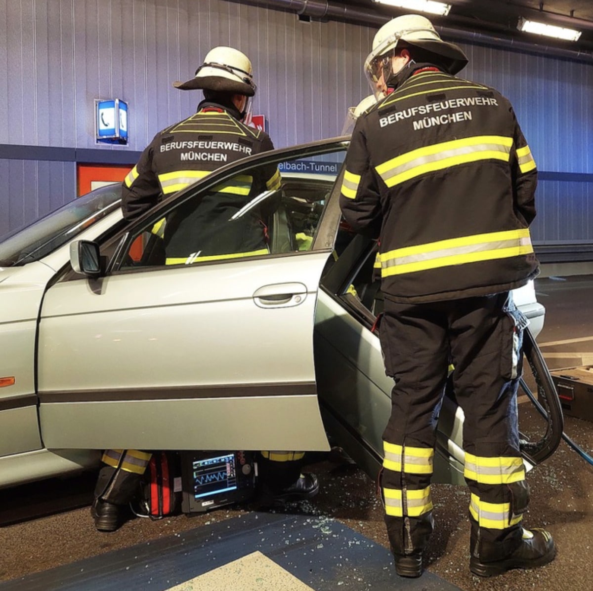 Die Besatzung eines Hilfeleistungslöschfahrzeugs der Feuerwehr München bereitete umgehend die technische Rettung vor. Die Rettungswagenbesatzung, ebenfalls von der Feuerwehr München, übernahm die Versorgung des schwer verletzten Autofahrers.