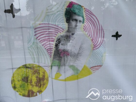 Im Kunstunterricht entwarfen Schülerinnen collagenartige Bilderzyklen rund um Themen und Persönlichkeiten unserer und vergangener Zeiten. Zur Stadtgeschichte taucht Kaiser Augustus umgeben von Friedenstäubchen auf, ebenso der große Geldgeber Jakob Fugger, umkreist von vielen Münzen. Die Gründerin des Gymnasiums Maria -Theresia, die letzte Königin Bayerns, geistert immer wieder durch die Collagen, sogar einmal mit einem aktuellen Verkehrsmittel, dem Fahrrad.