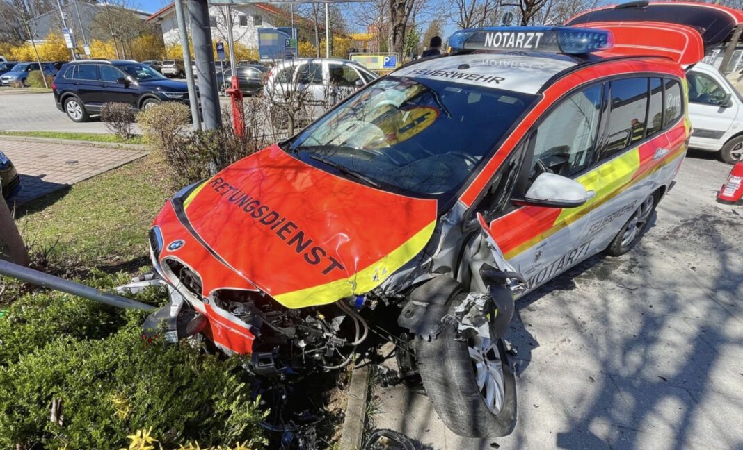 Bei einer Alarmfahrt ist es am Montagvormittag in München zu einem Verkehrsunfall zwischen einem Notarzteinsatzfahrzeug (NEF) und einem silbernen Mercedes gekommen. Vier Personen wurden dabei verletzt, darunter auch die drei Insassen des Einsatzfahrzeugs.