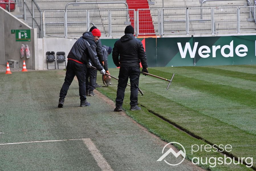Beim FCA hat man sich wieder für einen Hybridrasen entschieden. Das moderne Geläuf wurde aus der Nähe von Mailand in die Schwabenmetropole gebracht und in den letzten Tagen verbaut. Geschätzt musste der Bundesligist als Eigentümer der Arena für Rasen und des erstellen des Untergrunds einen mittleren sechsstelligen Betrag in die Hand nehmen.