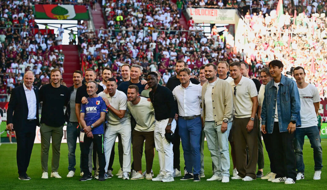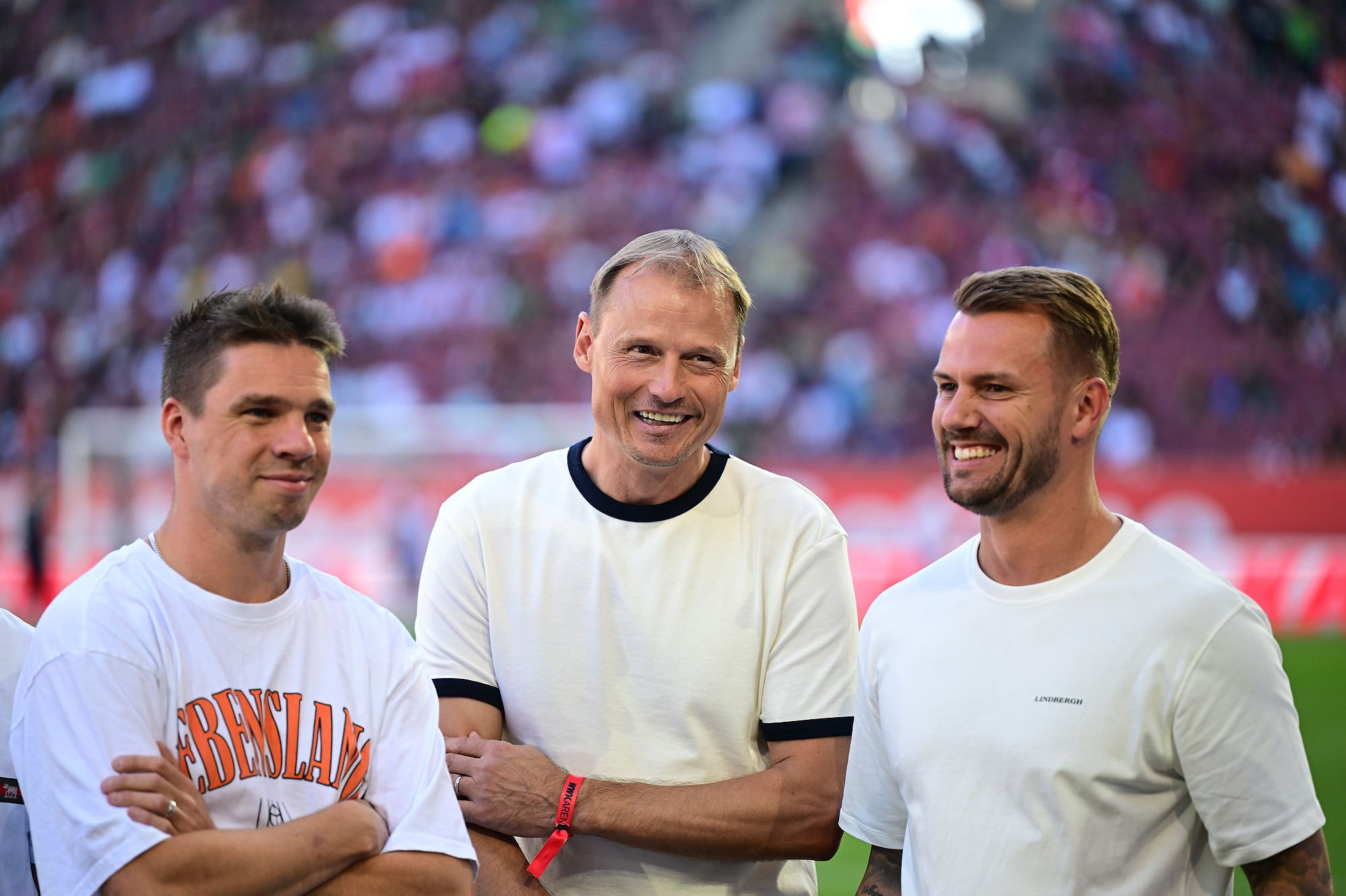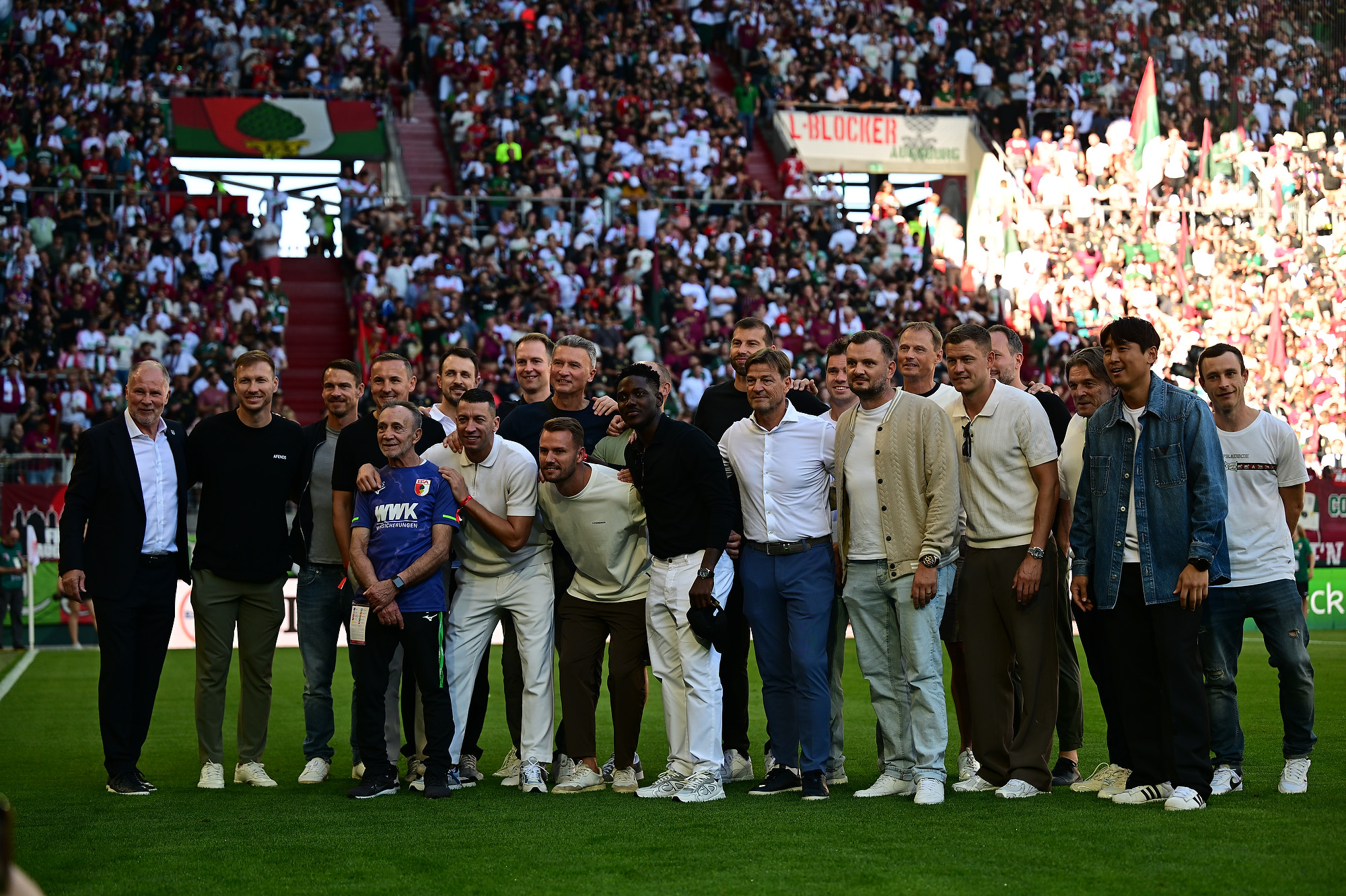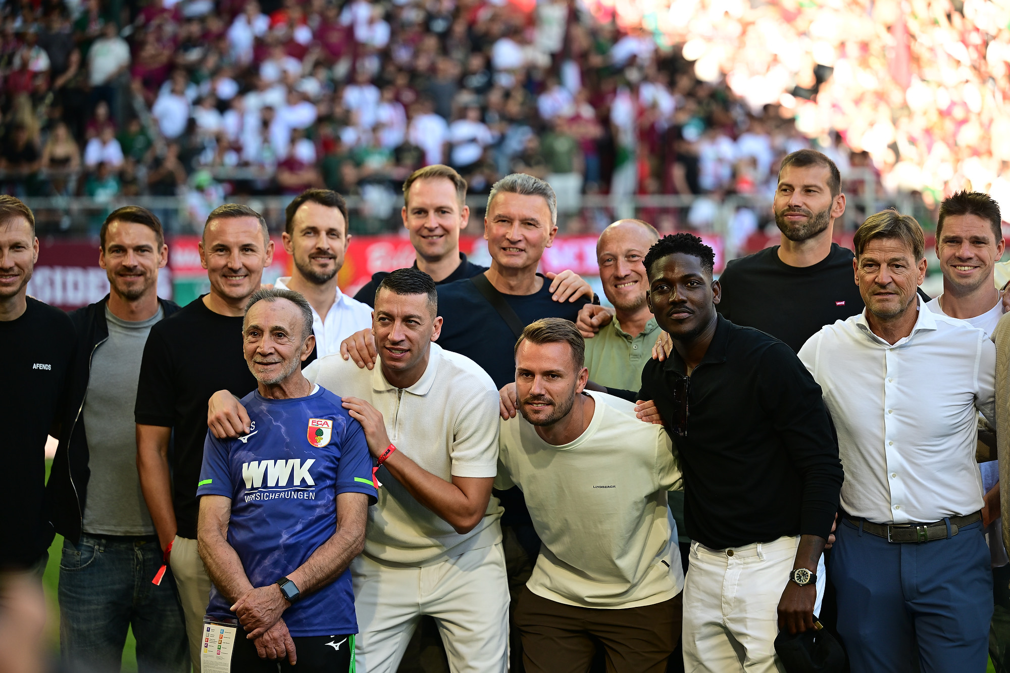 Vor dem Anpfiff richtete der ehemalige Sport-Geschäftsführer Stefan Reuter ein paar Worte an die Fans und ehemaligen Spieler: „Wir feiern heute etwas Einmaliges für unseren FCA. Das war nur möglich, weil die Mannschaft auf dem Platz alles gegeben hat und einen unglaublichen Teamgeist hatte.“