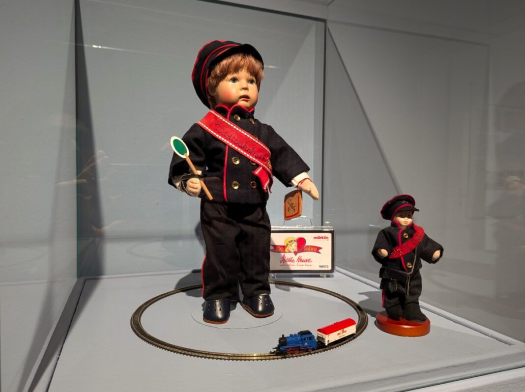 Eine sehenswerte Rarität ist auch die Käthe Kruse Puppe „Wilhelm der Schaffner“, eine Zusammenarbeit der Käthe Kruse Werkstätten und Märklin. Das seltene Sondermodell wurde 2005 in einer limitierten Auflage von nur 150 Stück herausgebracht und lässt das Herz von Puppen- und Eisenbahnsammlern gleichermaßen höherschlagen.