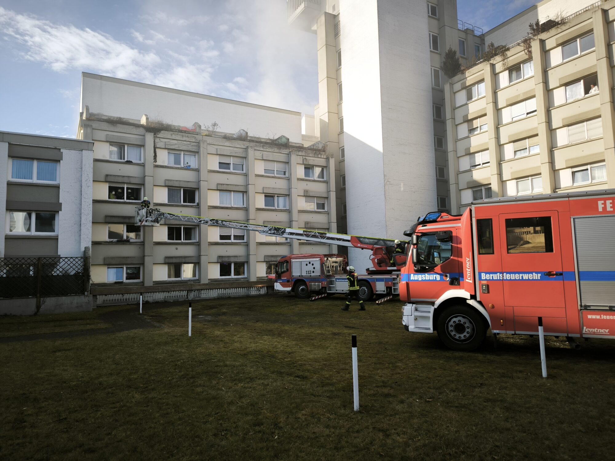Bei einem ausgedehnten Wohnungsbrand in der Biermannstraße in Augsburg ist es am späten Vormittag zu einem Großeinsatz von Feuerwehr, Rettungsdienst und Polizei gekommen. Die Berufsfeuerwehr Augsburg wurde kurz nach 10.30 Uhr alarmiert.