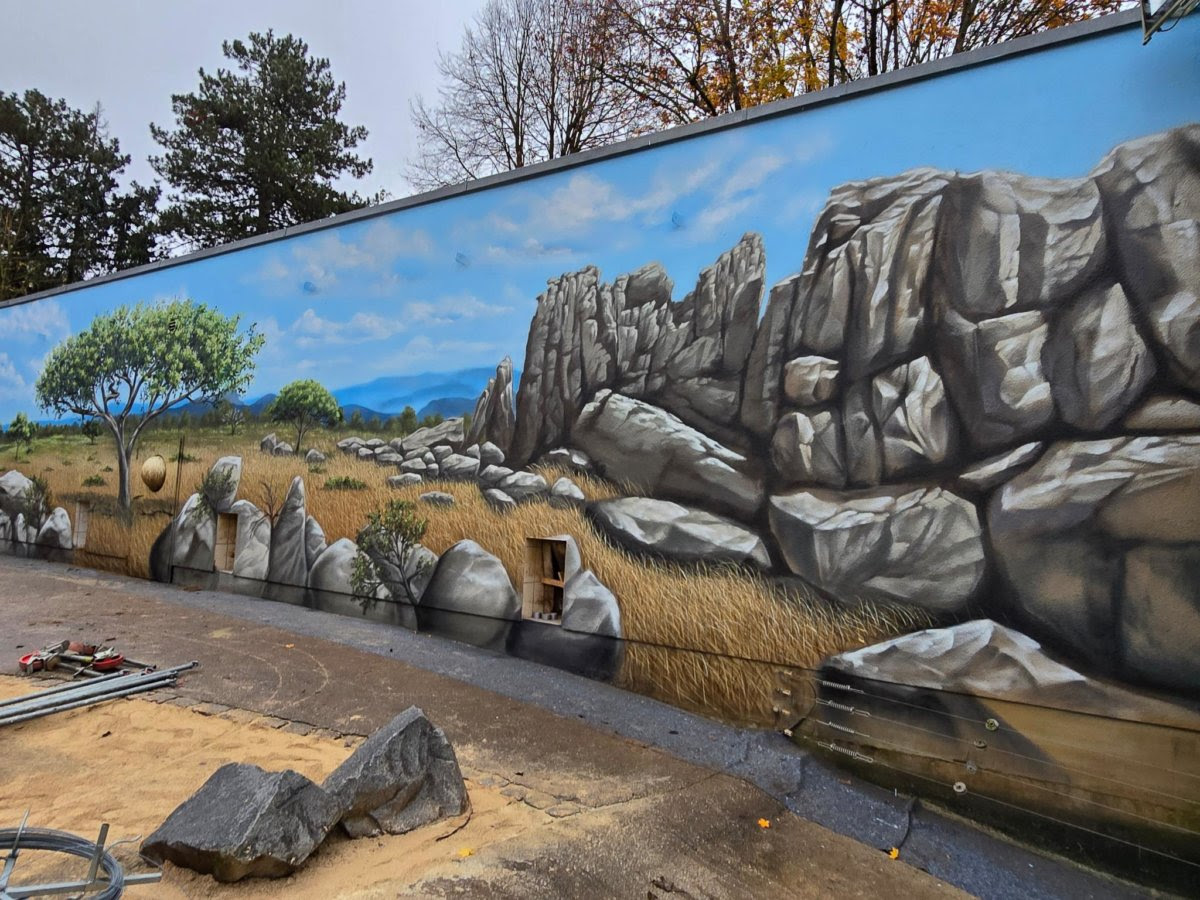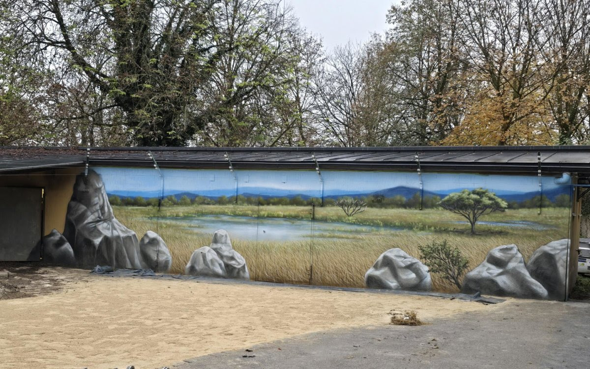 Aufmerksamen Zoobesuchern ist es sicherlich bereits aufgefallen: Nach der Verschönerung der Volieren in der Tropenhalle hat Herr Oschatz auch die Rückwände der Pavian- und Rotbüffelanlage mit einem neuen Design aufgewertet.