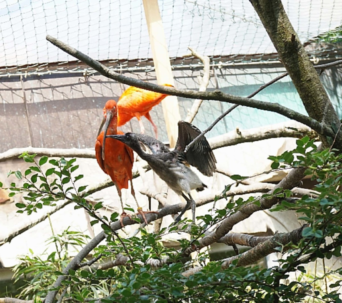 Besonders agil zeigt sich der Nachwuchs bei den Roten Sichlern – der Jungvogel ist bereits aktiv in der Anlage unterwegs. Auch bei den Schwalbensittichen gibt es Neues zu beobachten: Zwei Jungtiere sind inzwischen ausgeflogen und erkunden neugierig ihre Umgebung.